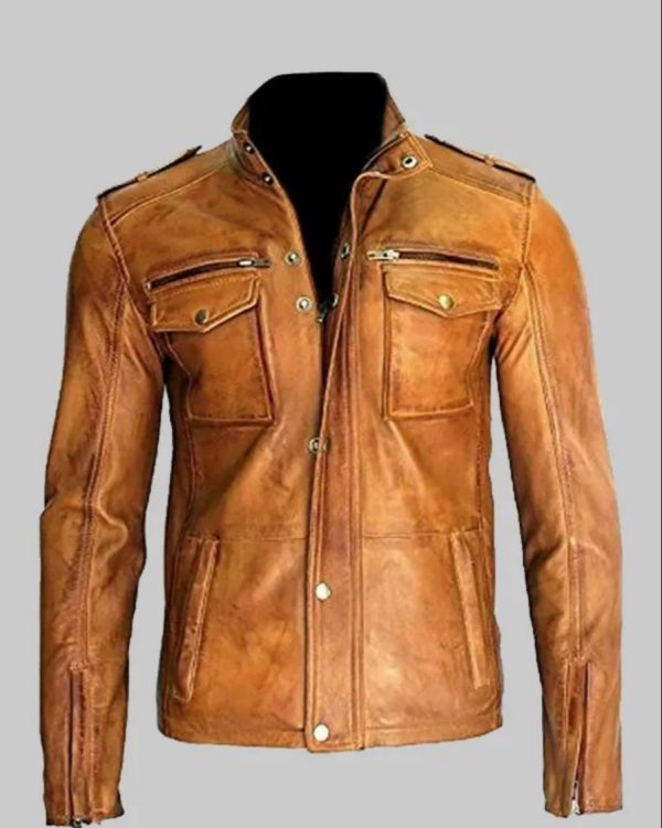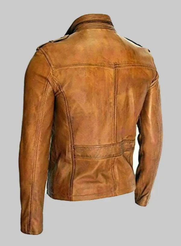 Mens Biker Tan Distressed Motorcycle Real Leather Jacket